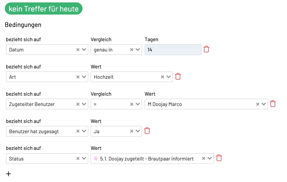 | Doojay Zuteilungsdatum | genau in, höchstens in (<=), mindestens in (>=) | Anzahl in Tagen relativ zu heute (Minus davor auch möglich) |