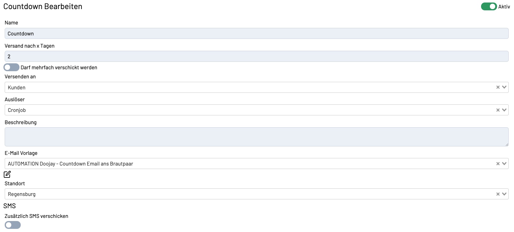 Bei einer Änderung wird automatisch gespeichert.Aktiv